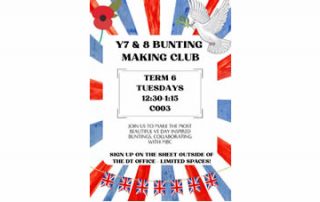 Year 7 & 8 Bunting Making Club – Term 6 12:30–13:15 | Room C003