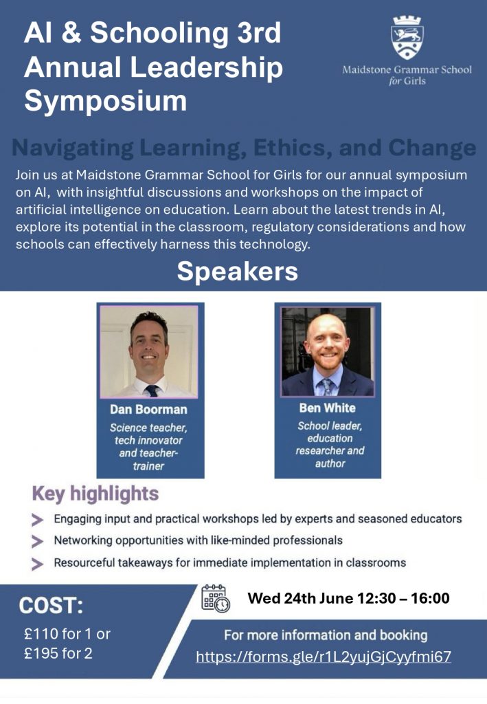 Join us at Maidstone Grammar School for Girls for our annual symposium on AI, with insightful discussions and workshops on the impact of artificial intelligence on education. Learn about the latest trends in AI, explore its potential in the classroom, regulatory considerations and how schools can effectively harness this technology.