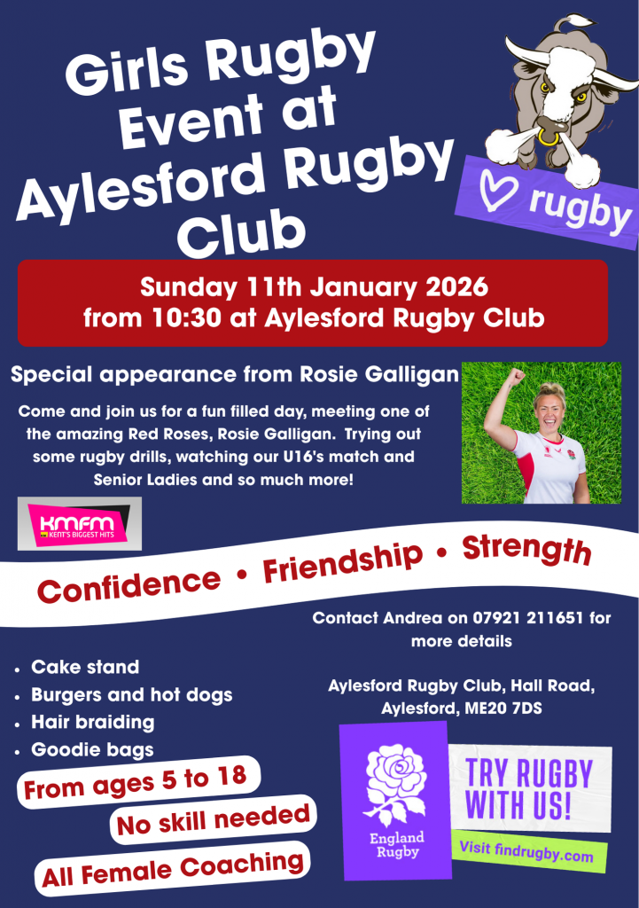 Aylesford Rugby Club is holding a girls’ rugby taster event on the 11th January 2026 and would love for students to come down and join in the fun.