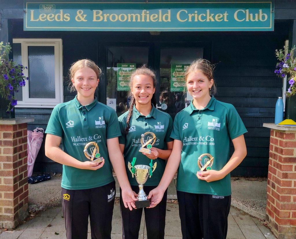 Congratulations to Grace T, Brooke G and Nyah D, who won the U13s Weald of Kent League this weekend, playing for Leeds and Broomfield Cricket Club.