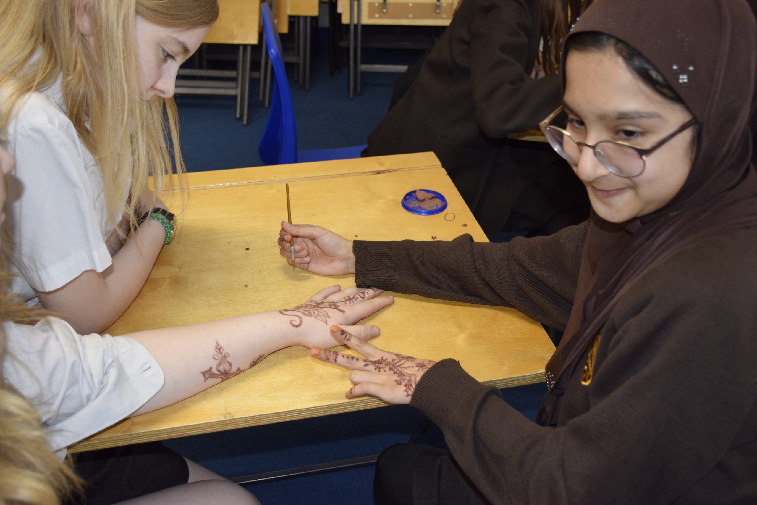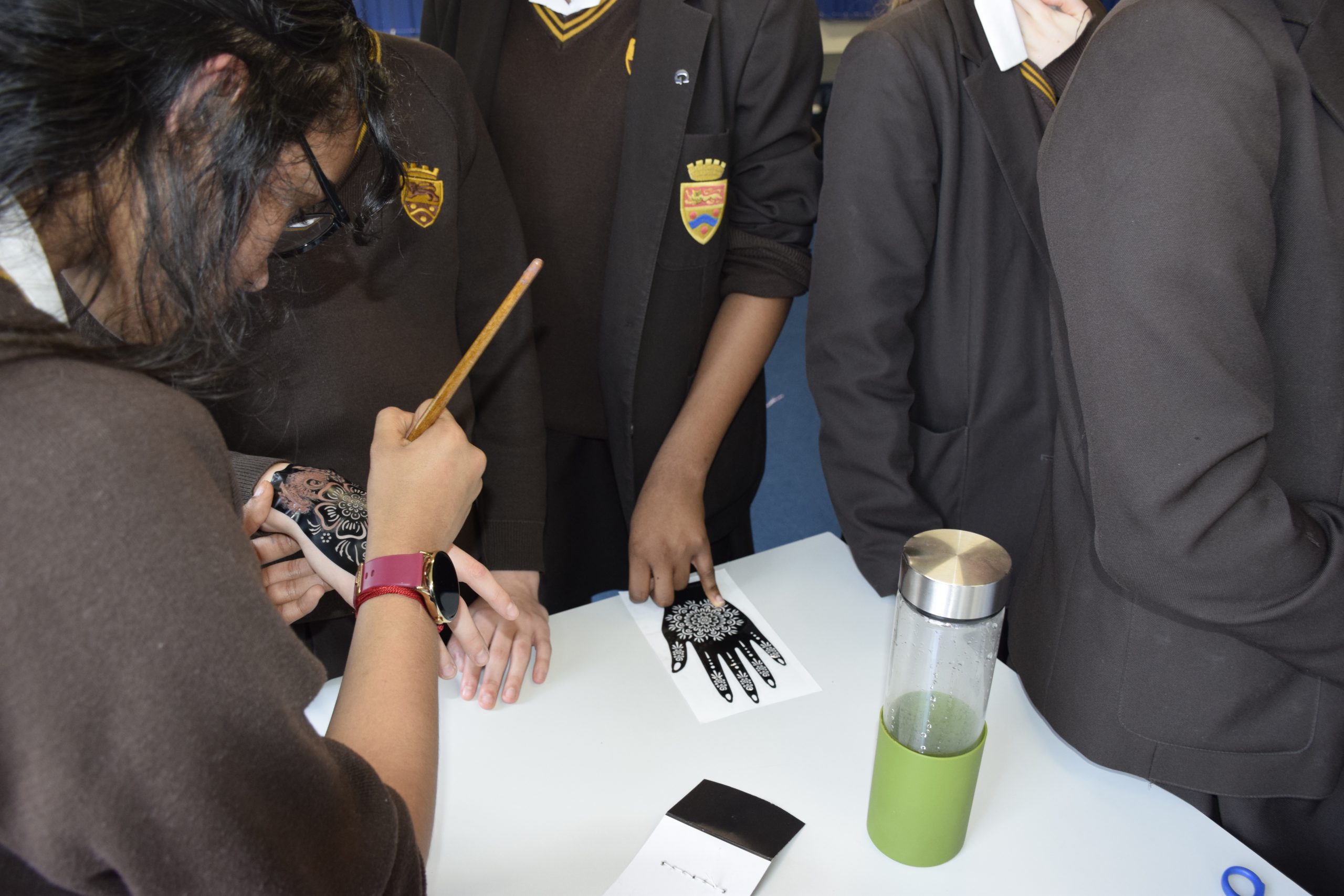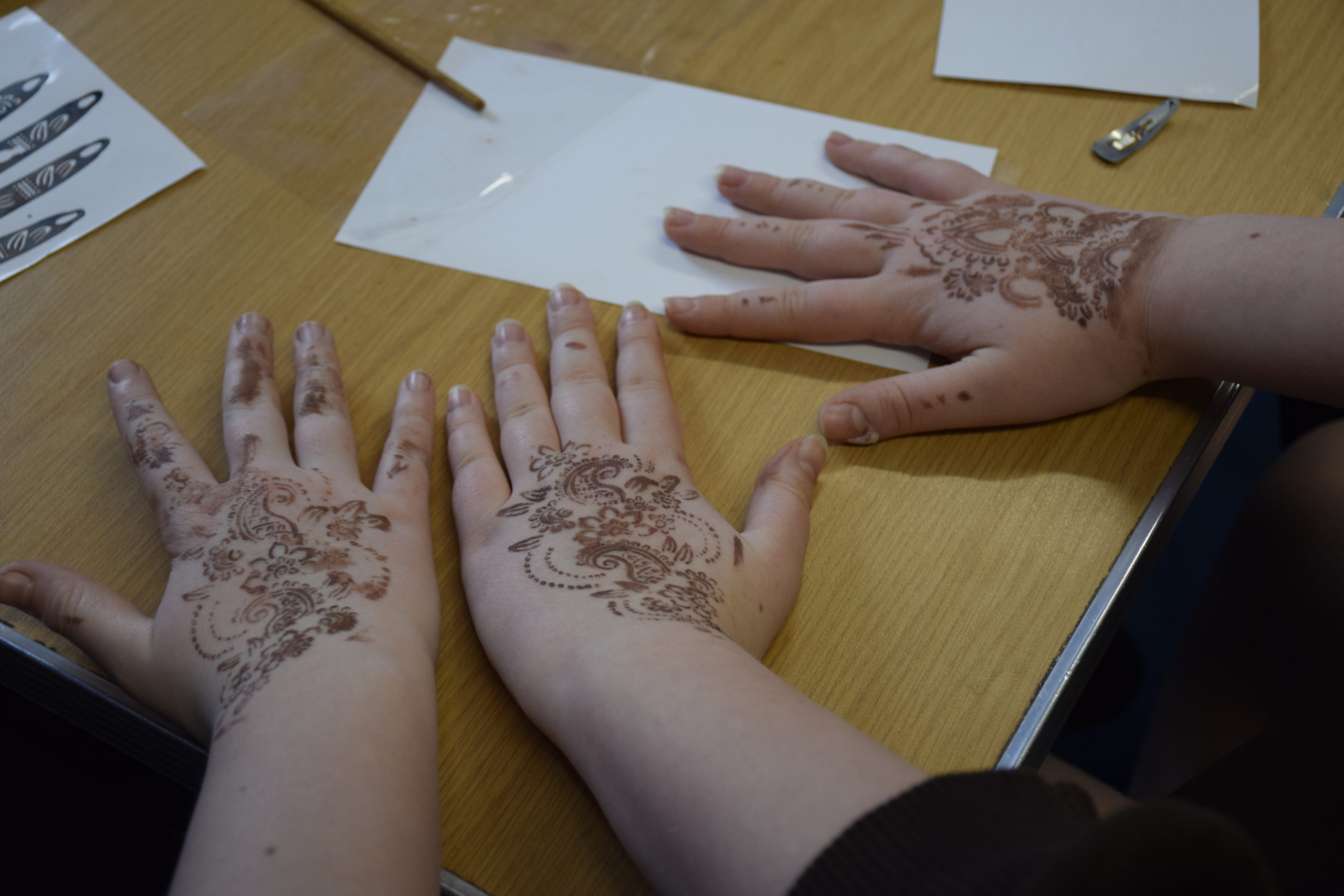 On Monday, 23rd March, we organised a bake sale which raised nearly £50 – all proceeds to go to the local student-elected charity https://www.diversityhouse.org.uk/ – a centre for innovation and empowerment that focuses on the health and wellbeing of local women and girls. At lunchtime, we also organised a henna workshop, which was incredibly successful.