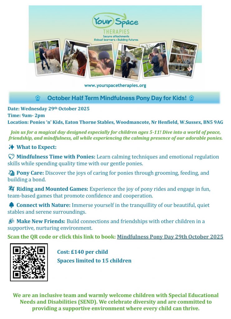 Following the fantastic success of our summer Mindfulness Pony Days, we’re excited to announce another session on Tuesday, 29th October at Ponies n Kids, Henfield.