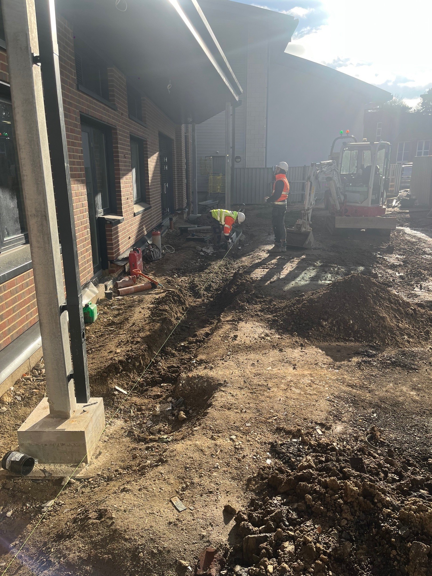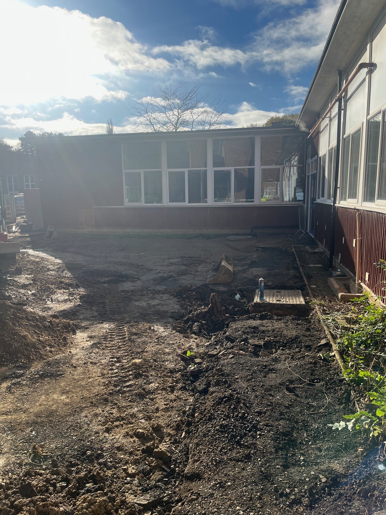 • Groundworks along the North elevation have officially begun – clearing material, ready for the tarmac and fitting new ACO drainage.