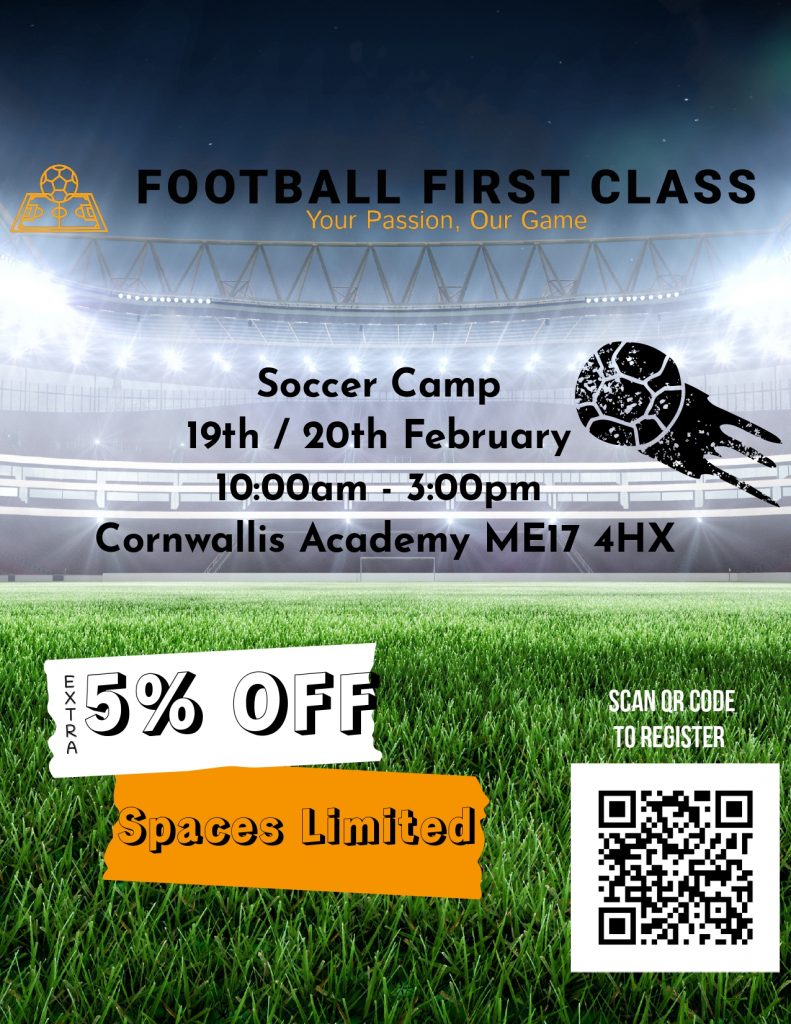 February half term soccer camp with a 5% discount for pupils at MGGS who wish to attend both days, Thursday 19th and Friday 20th February.