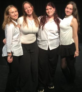 Year 13 A Level Drama and Theatre students captivated an invited audience of friends last week with their original devised pieces. ‘The Eulogy’ explored the grief, conflict and connection shared by four sisters in the aftermath of their father’s death. Drawing inspiration from the physical, emotionally charged style of Frantic Assembly, the ensemble crafted a performance that blended movement, dialogue and tightly choreographed sequences with tender moments of stillness and intimate storytelling.