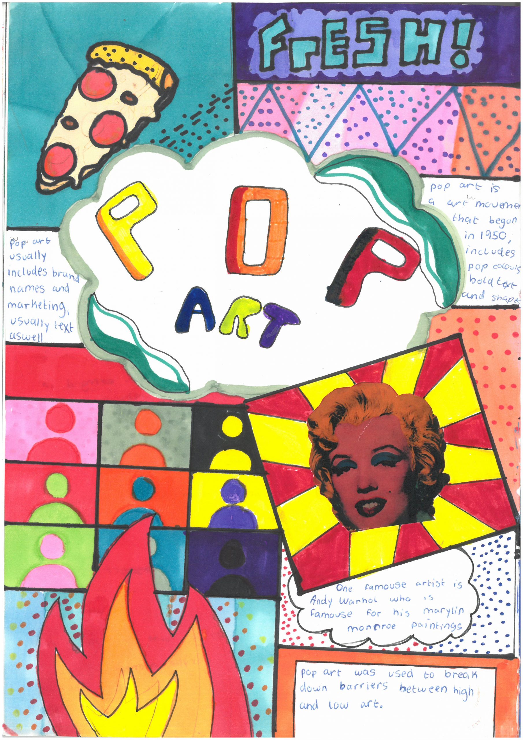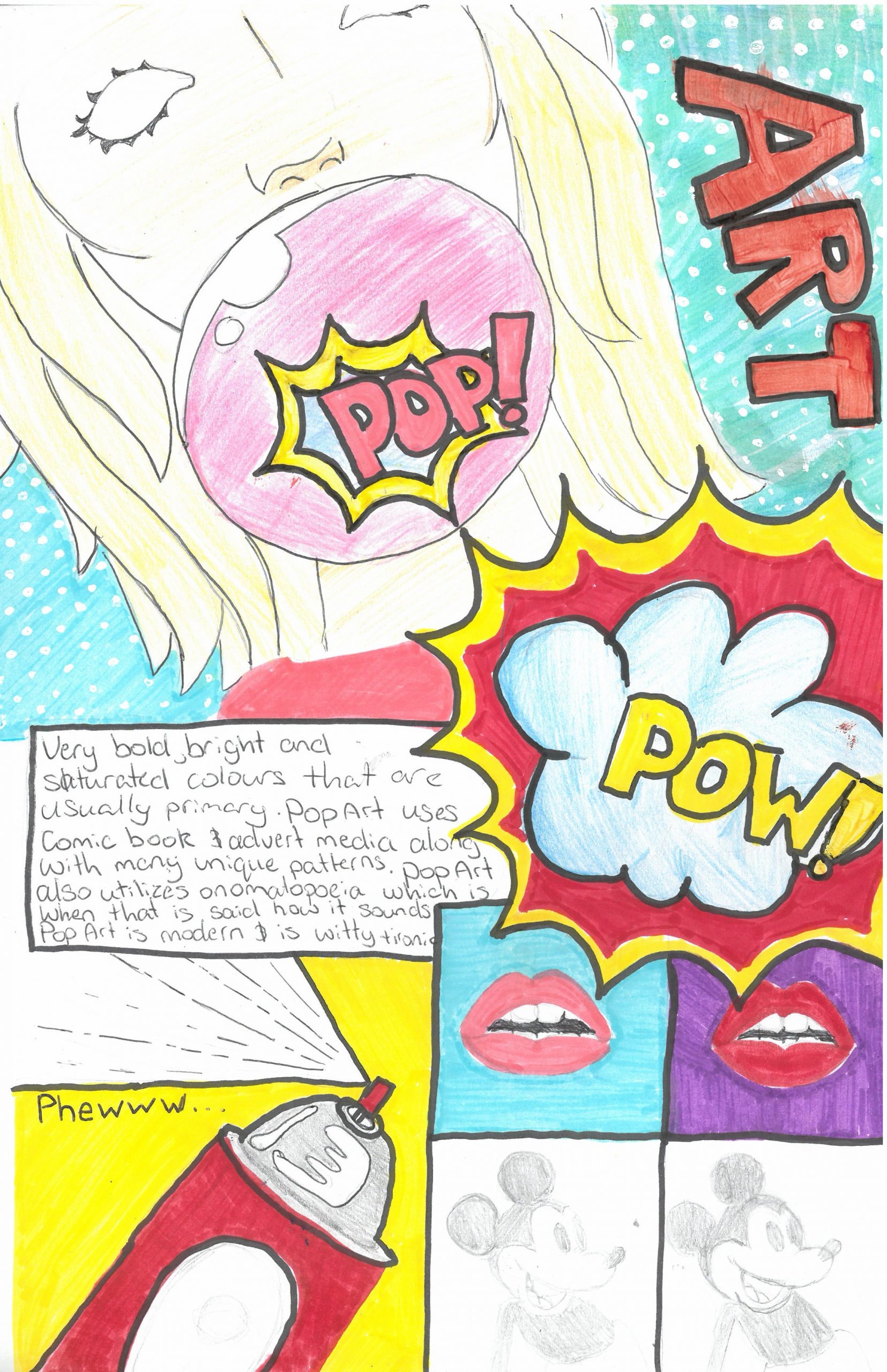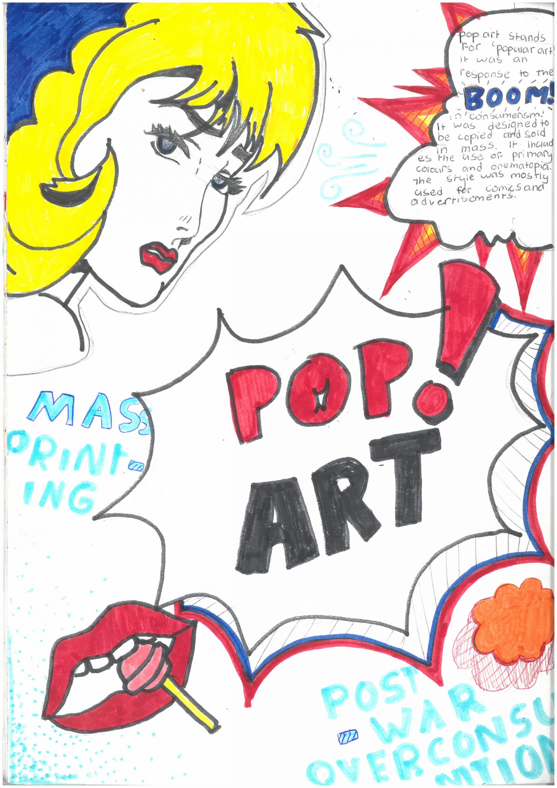 Our Year 8 students have officially begun their exciting learning journey into the world of Pop Art! As their first task, students designed a vibrant title page inspired by the bold and energetic style of the movement.