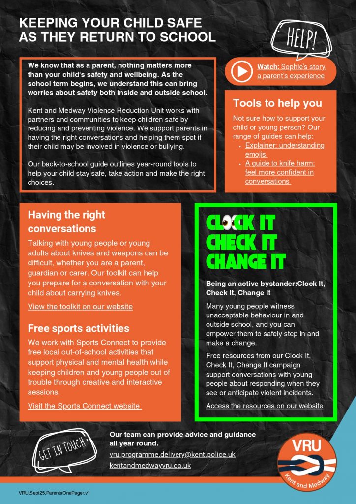 Kent Police have asked us to share with parents and carers this leaflet contains the following information and links: